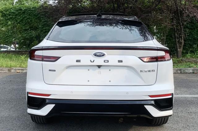 福特EVOS混动版在外观方面,延续了现款车型的设计风格,中网由鳞片状亮黑色格栅组成,给人的视觉观感还是比较不错的,并且支持主动闭合式功能,大灯组采用分体式设计鑫策略,前包围也突出一些锋利的棱角,提升了车头的运动氛围,黑色刀锋式轮毂也符合自身的气质,尾部还提供扰流板,尾灯采用贯穿式,福特LOGO下方还提供EVOS字母标识,车的尺寸为4920 1920 1600毫米,轴距为2945毫米。